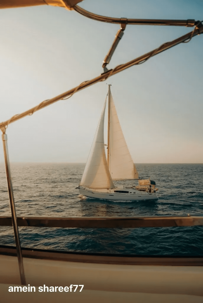 This is a beautiful boat, sailing around a huge ocean. It has been a peaceful time so far, but I can see a storm ahead.
