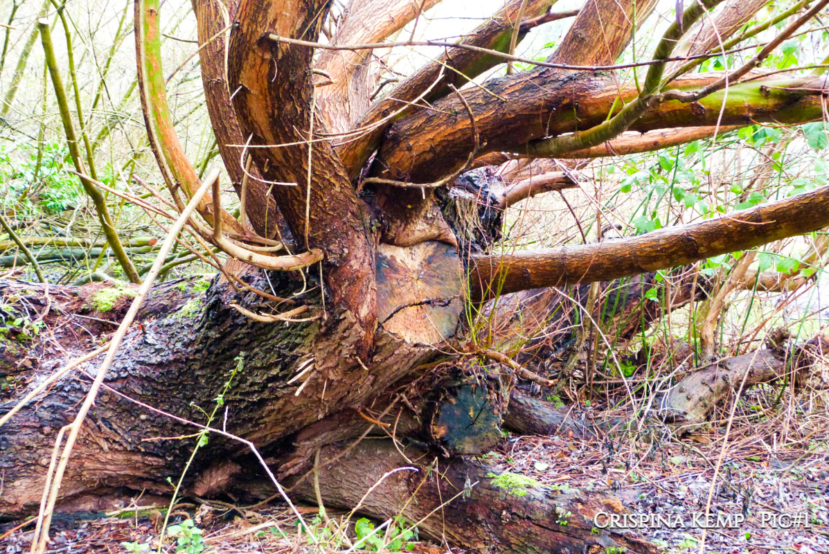 The two of them dropped their bikes. They walked around that huge broken down tree. They climbed up for a while, until both of them dropped down again. They stood together just a few metres away, and they stared and stared again at that upside down tree. For a while, they seemed to be mesmerised, but then they started to giggle.