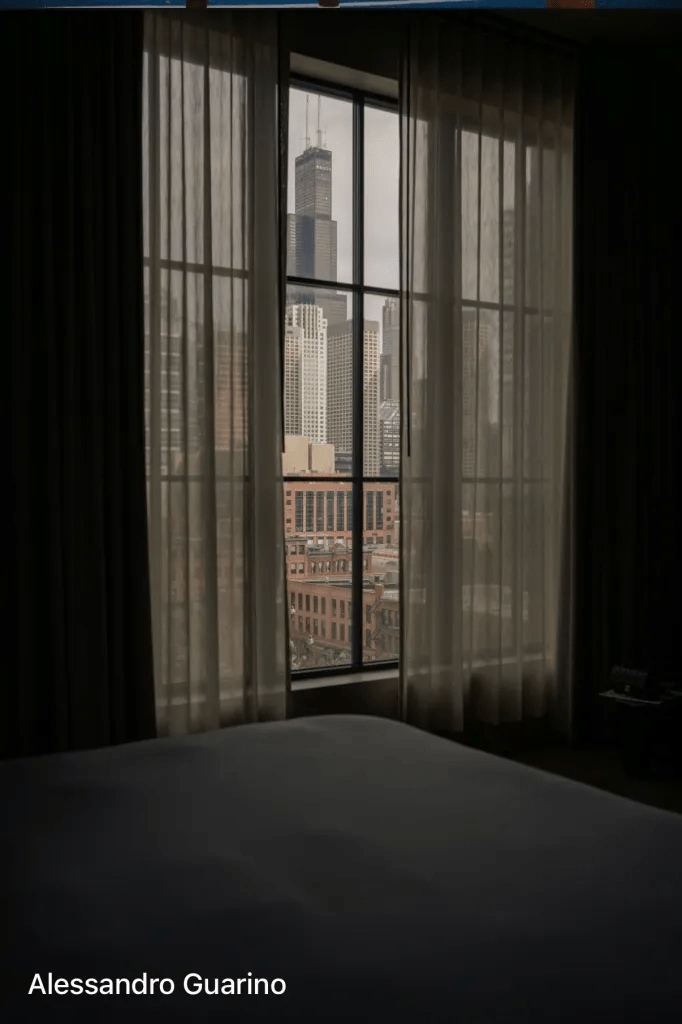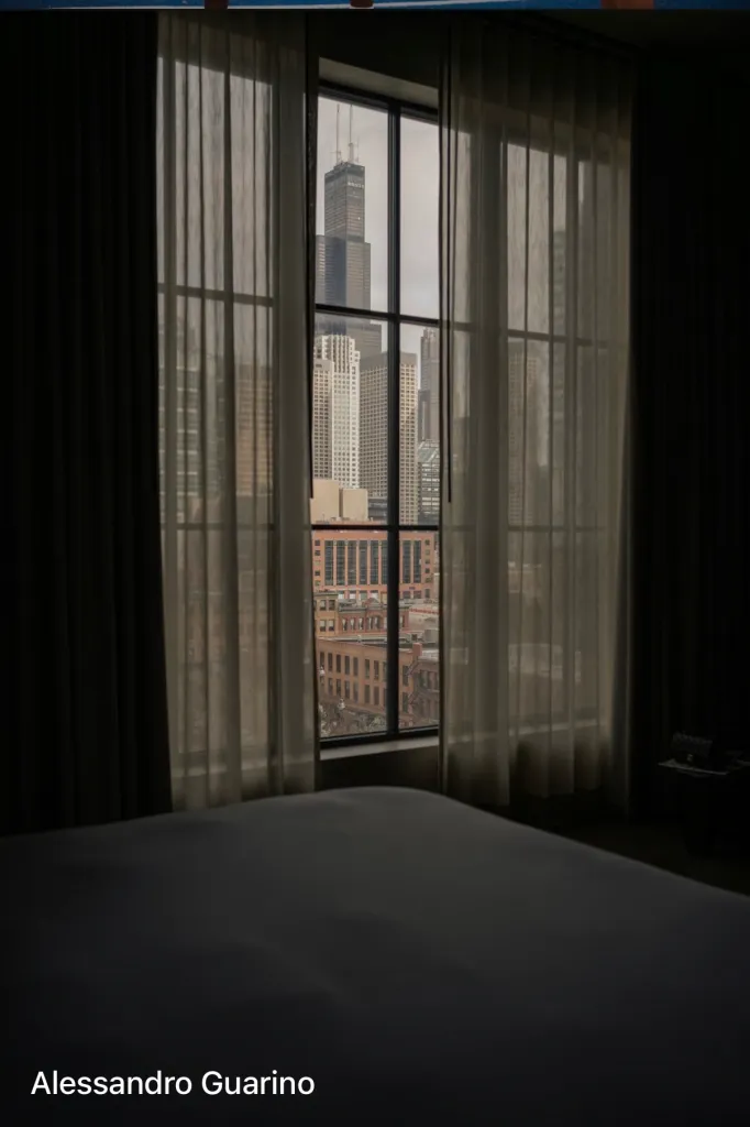 Chicago, Chicago! What a wonderful city. We know it’s called the Windy City, but from here in this lovely hotel it seems blissful. Such a gorgeous view. We can see for miles and miles. All those striking skyscrapers. What a joy!
