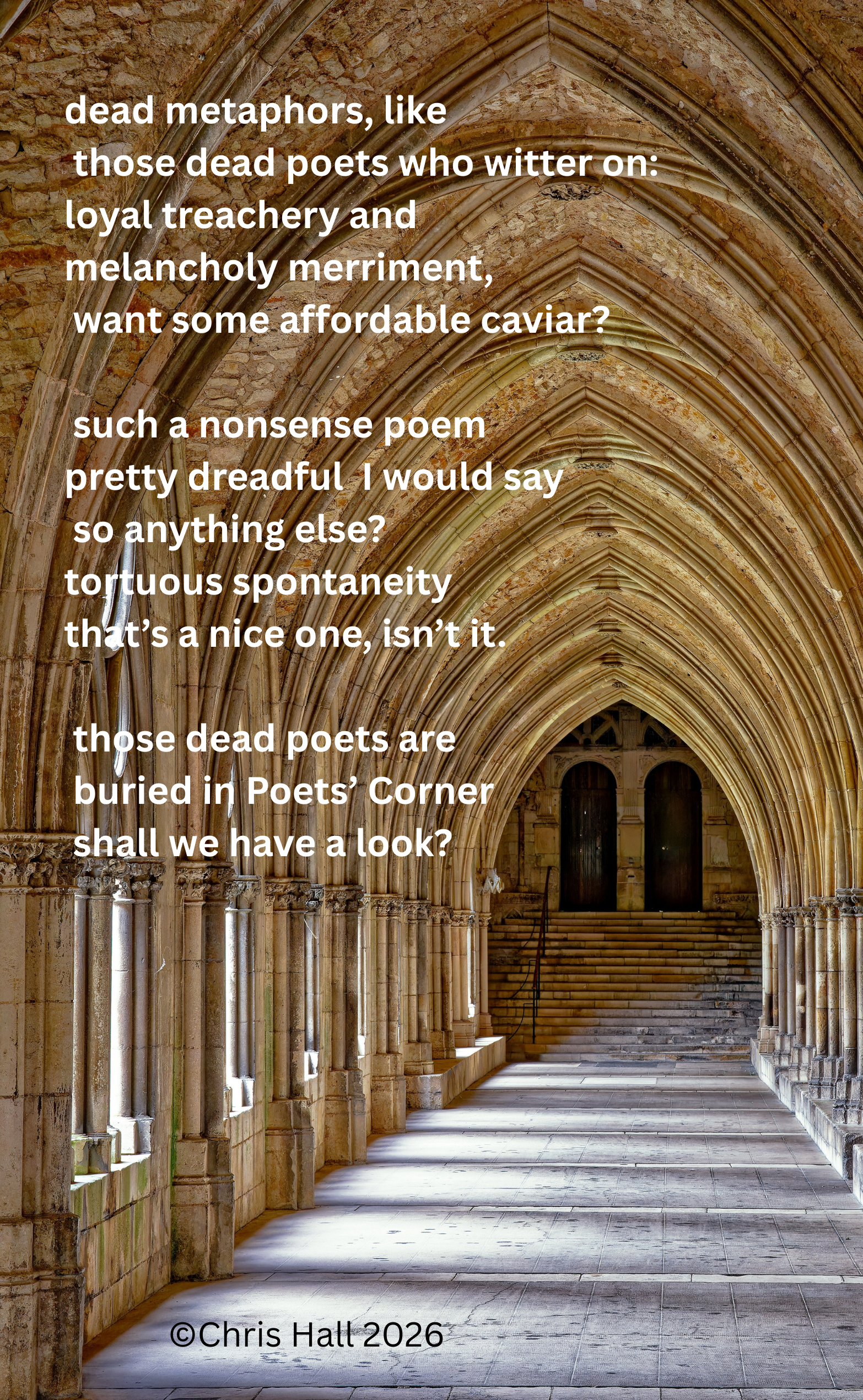 those dead poets are buried in Poets’ Corner shall we have a look?