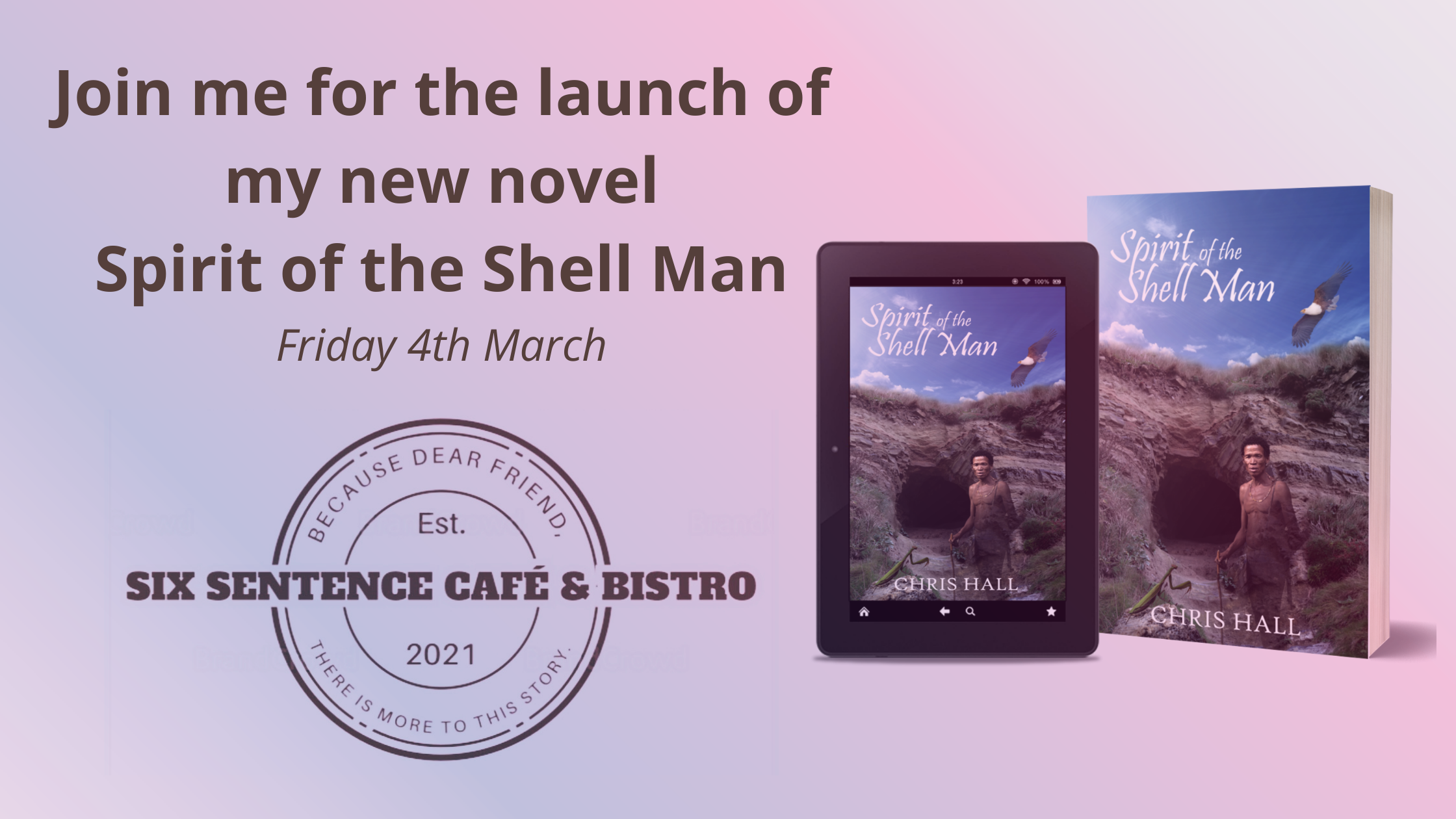 ‘Listen. Why don’t you all come to the launch of the Spirit of Shell Man next Friday? It’s being held at the Six Sentence Café and Bistro. My back catalogue books will be there, so you’ll be able to engage with readers.’