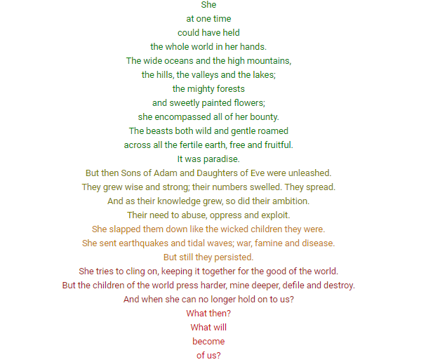 A bolt of alarm shot through her. What had gone wrong? All she’d done was turn back Time a little bit in that small corner of the galaxy, so that the little humans could have a major re-think and cease their wanton destruction her lovely blue planet.